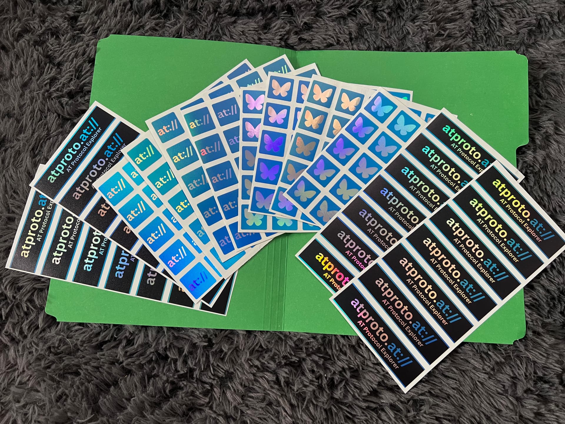 Several people have asked for a swag store of some kind. We looked at this around ATmosphereConf but ran out of time, but the big thing actually is that very short run stickers – like a 5 pack or a single sticker sheet – are very expensive to produce and ship if you want to get them anywhere in the world.