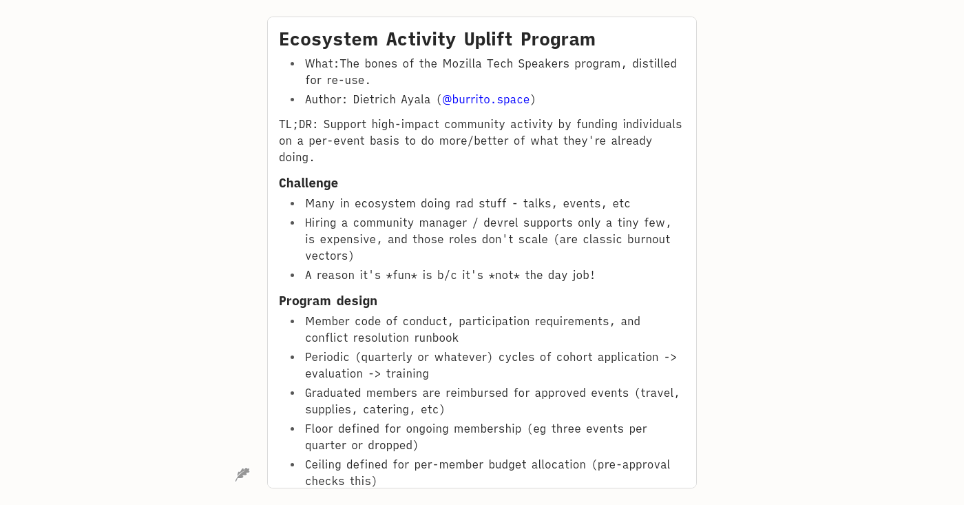 This would need funding to run such a thing, although we could maybe prototype parts of it with the Community Fund.