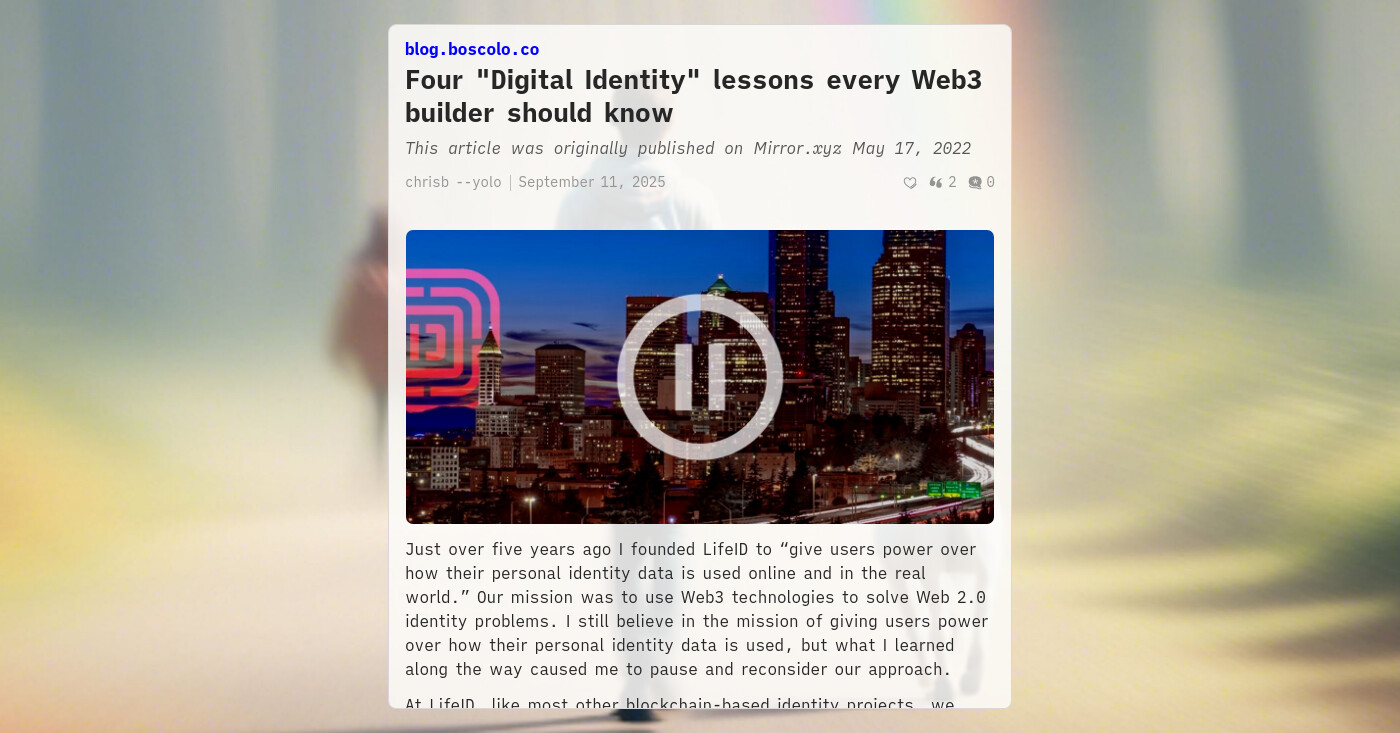 The trust/reputation layer isn’t its own product yet (and shouldn’t be right now), but it could be a good add-on business once either Barazo or Sifa is further along. So the real choice is between those two: