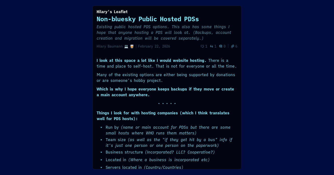 List yourself here if you run a PDS that is generally open for anyone to use, or otherwise make a note like “for me and my friends”, “for ATProto testing”, etc
